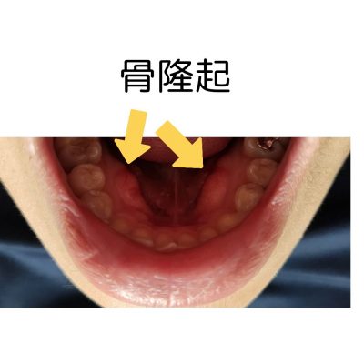これは、骨隆起といって食いしばりが強い方に見られるものです。